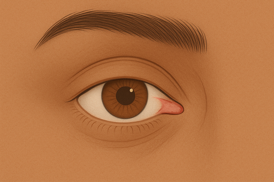 El pterigión, también conocido como “carnosidad en el ojo”, es un crecimiento anormal de tejido conjuntival que se extiende desde la parte blanca del ojo hacia la córnea.